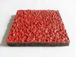 由于產(chǎn)品表面采用顆粒與聚氨脂膠粘劑混合后噴涂,不會產(chǎn)生脫離現(xiàn)象。表面耐磨性強。能滿足學(xué)*長時間,高頻率教學(xué)使用,而且價格低廉,所以非常適合中小*校鋪設(shè)。